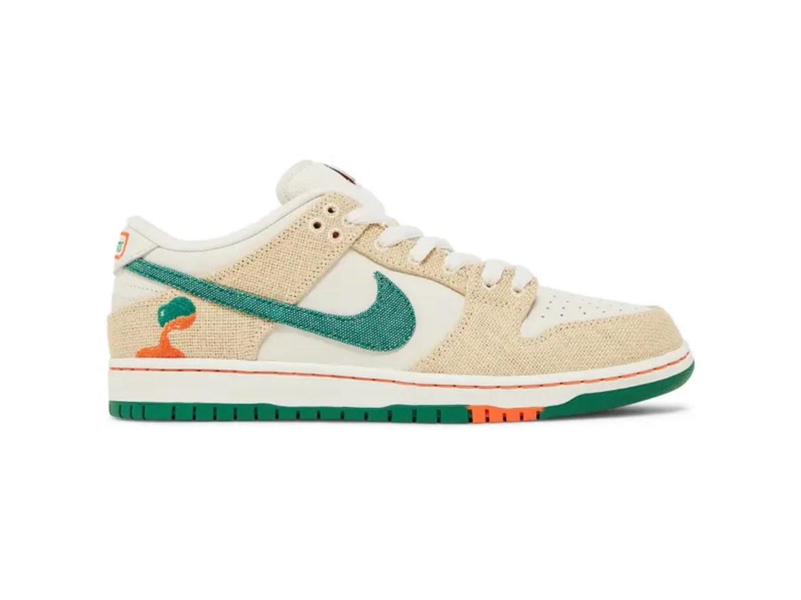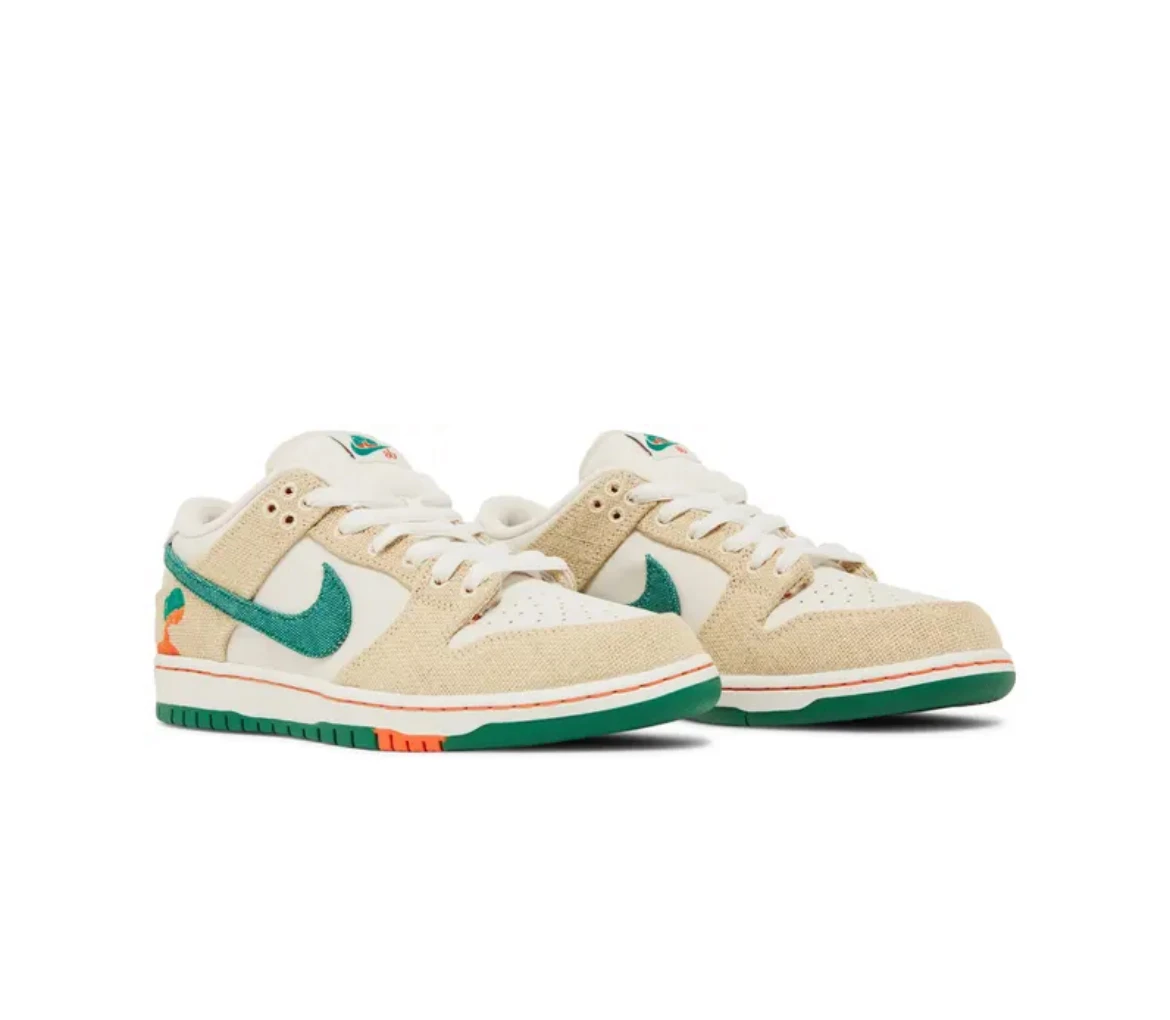 The Jarritos x Nike SB Dunk Low brings bold color, cultural flavor, and playful detail to one of Nike SB’s most iconic silhouettes. Inspired by the famous Mexican soda brand, this collaboration features a premium leather base with hemp-textile overlays, echoing Jarritos’ classic packaging. Tear-away orange panels reveal soft green layers underneath, while custom branding—including Jarritos’ jug logo and special tongue tags—adds unmistakable personality. A cushioned Zoom Air footbed and durable rubber outsole deliver true skate-ready performance. Refreshing, vibrant, and collectible — this SB Dunk Low captures the spirit of community, heritage, and creativity. |
