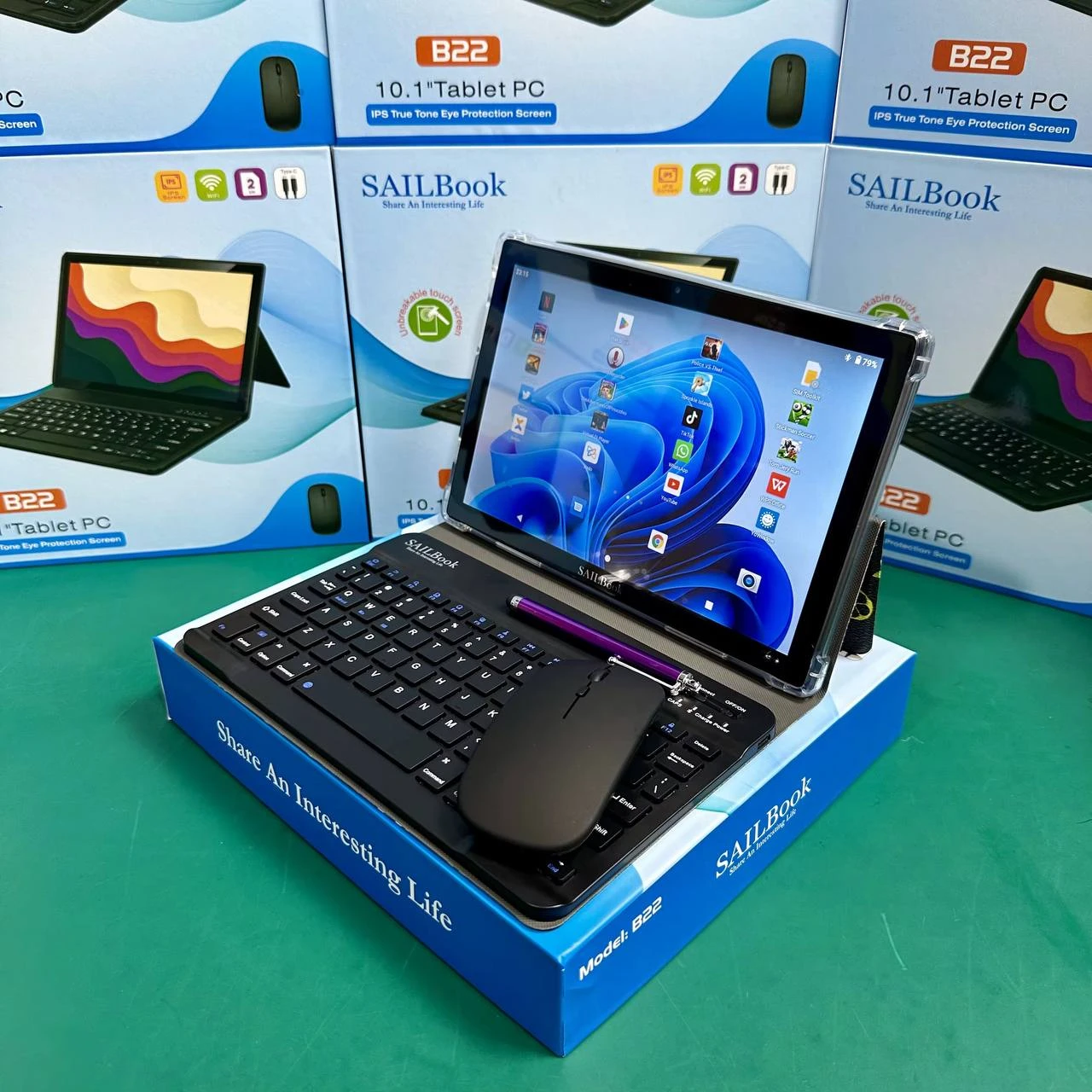 SmartTab B22 Android 13 tablet with a 10.1" display, 16GB RAM, 512GB storage, dual SIM support, and a 5600mAh battery. Comes with a detachable keyboard – perfect for work, study, and entertainment on the go. |