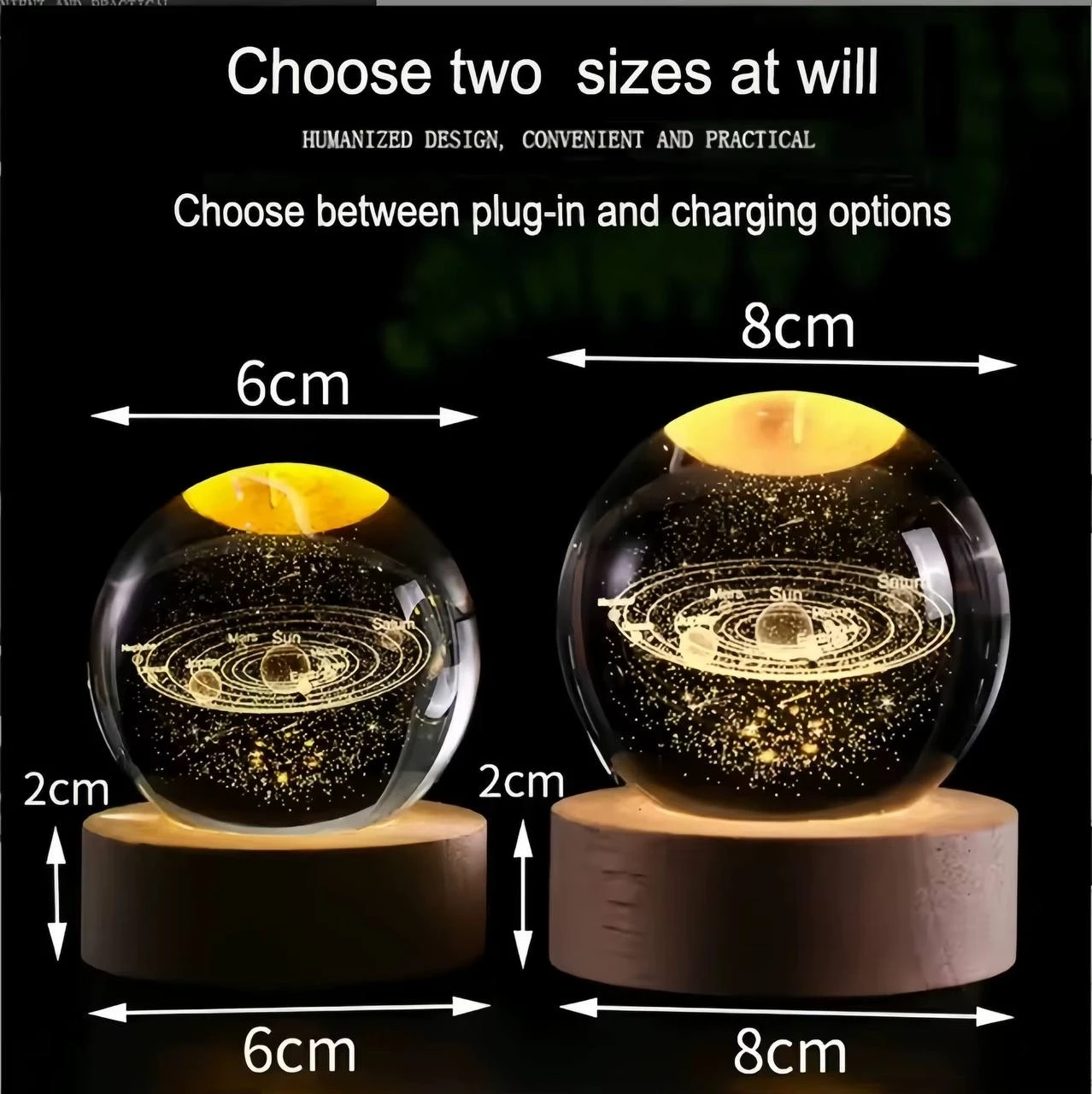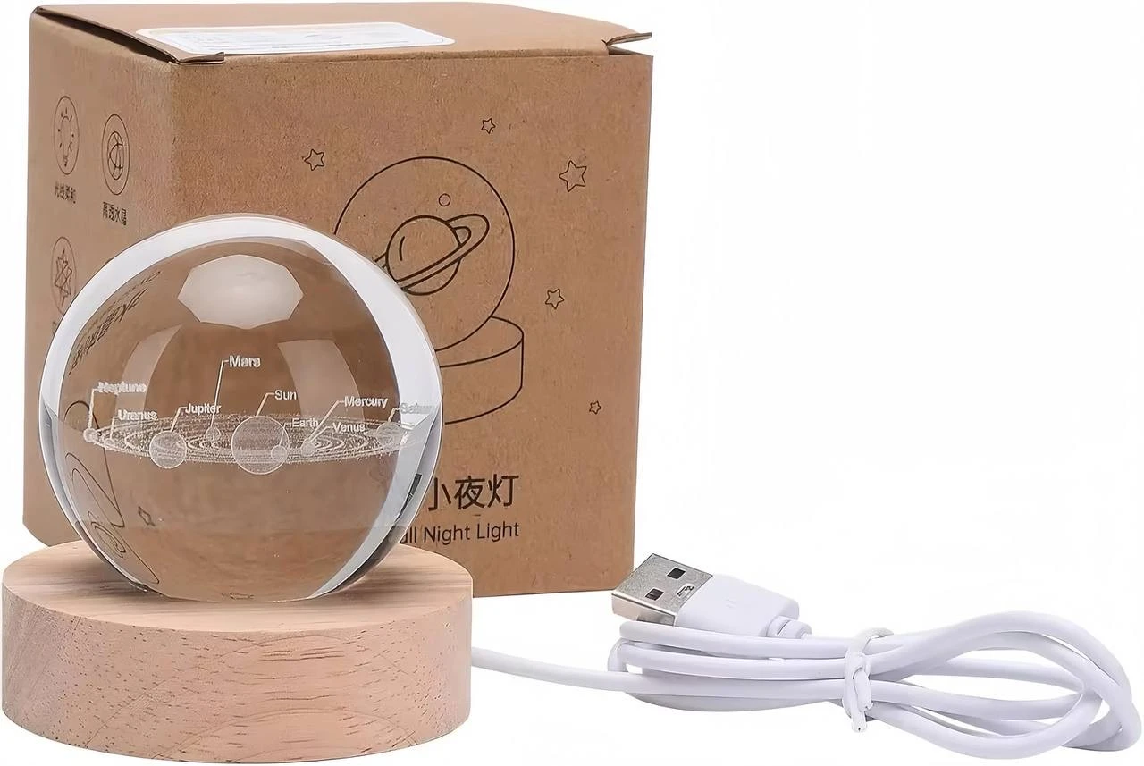 Add a magical glow to your space with the 3D Crystal Ball Night Lamp. Featuring a beautifully crafted engraved moon sphere, this lamp projects a warm, soothing light that creates a calming atmosphere. Mounted on a stable wooden base, it doubles as a decorative crystal ball and a functional night lamp, making it perfect for bedrooms, living rooms, or offices. An elegant piece of home décor and a thoughtful gift for loved ones. Product Details: