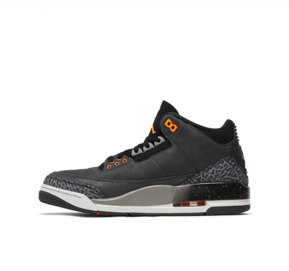 The Air Jordan 3 Retro 'Fear' (2023) returns with bold attitude and refined construction, reimagining the 2013 original from Jordan Brand’s "Fear Pack." This version features a dark anthracite suede upper, black and grey elephant print overlays, and vibrant orange accents on the eyelets and air unit. Sitting atop a speckled black midsole, the sneaker combines premium materials with a moody, high-contrast palette. A powerful blend of nostalgia and modern flair for collectors and sneakerheads alike. |