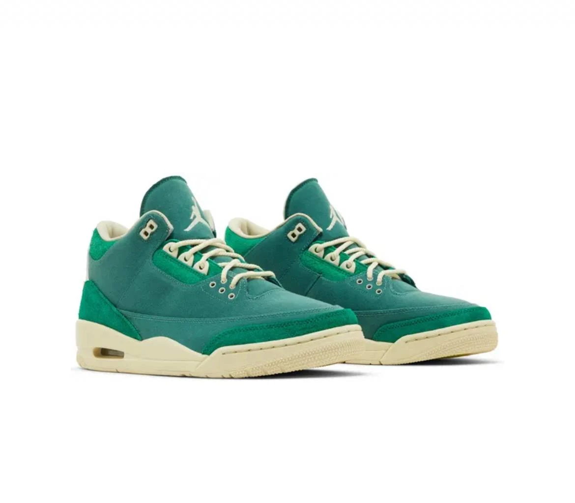 The Air Jordan 3 Retro SP “Bicoastal” delivers a fresh and stylish update to the legendary Jordan 3 silhouette. Featuring a smooth bicoastal green colorway, this sneaker blends modern elegance with classic Jordan heritage, making it a standout choice for lifestyle wear and sneaker collections. Crafted with a premium suede upper, the shoe showcases refined detailing, signature Air Jordan branding, and a visible Air-Sole unit for superior comfort. The cushioned midsole provides all-day support, while the durable rubber outsole ensures dependable traction. Its clean, monochromatic finish gives the sneaker a bold yet versatile look.