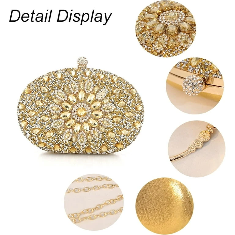 Add instant glamour to your evening outfit with this Crystal Rhinestone Evening Clutch. Designed with shimmering rhinestones, a compact silhouette, and a radiant glitter finish, this bling purse is perfect for weddings, parties, proms, and formal occasions. Wear it as a clutch or use the detachable chain strap as a sparkling shoulder bag. A stunning accessory to elevate any night-out look. |