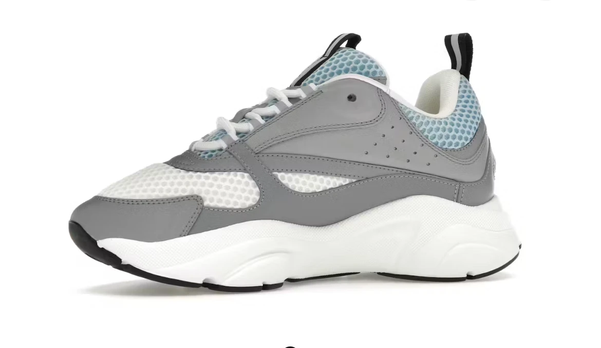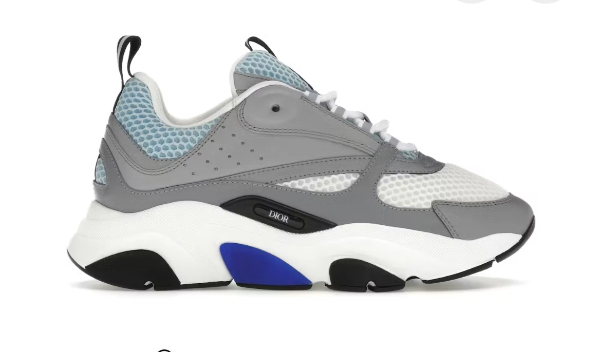 The Dior B22 Sneaker in White & Blue brings a bold, modern aesthetic to the House of Dior’s luxury sneaker lineup. This statement silhouette combines smooth calfskin leather with technical mesh, creating depth and dimension through layered construction. The crisp white base is accented with striking blue detailing, giving the shoe a sporty yet refined edge. A sculpted, oversized sole delivers comfort and visual impact, while subtle Dior branding adds an unmistakably premium finish. Perfect for elevated streetwear or contemporary casual outfits, the B22 White & Blue stands out with confidence and craftsmanship. |