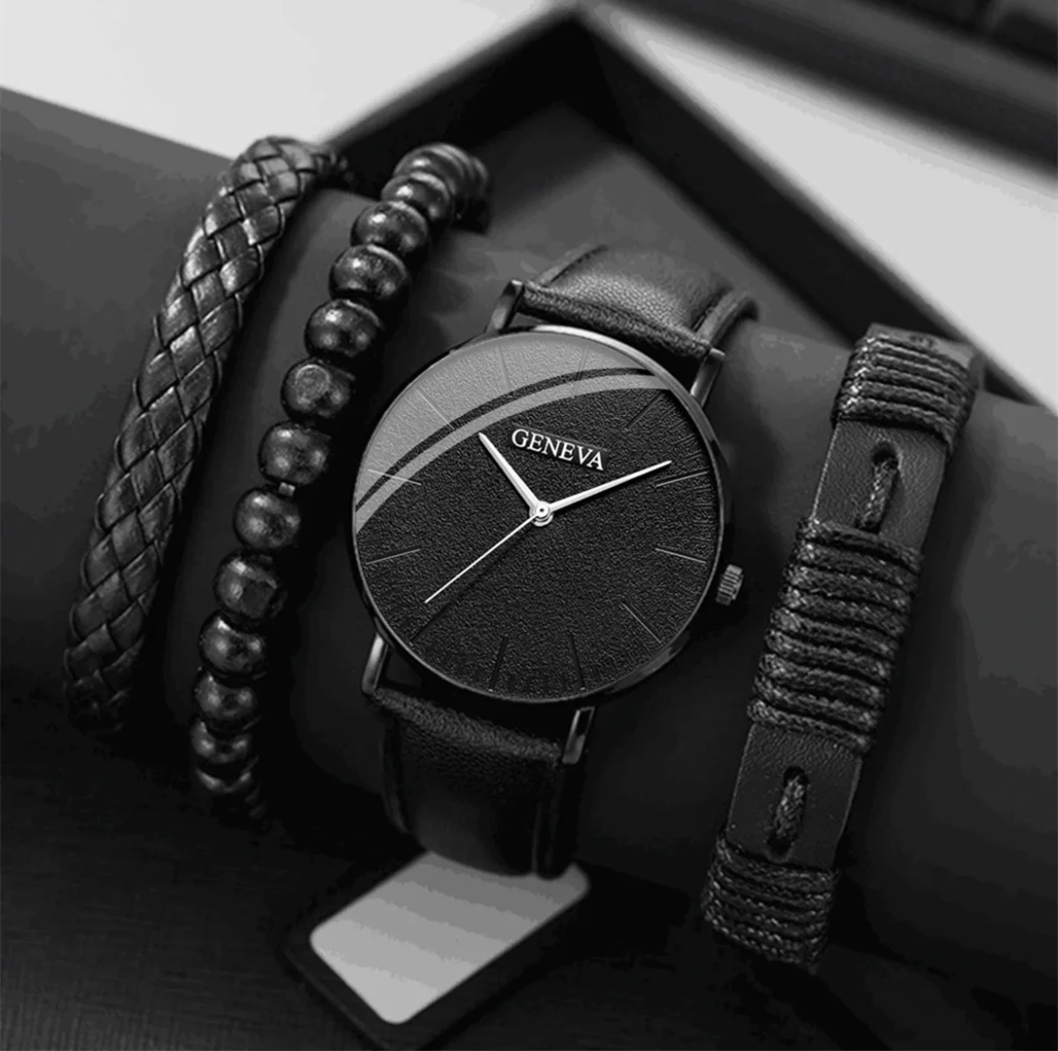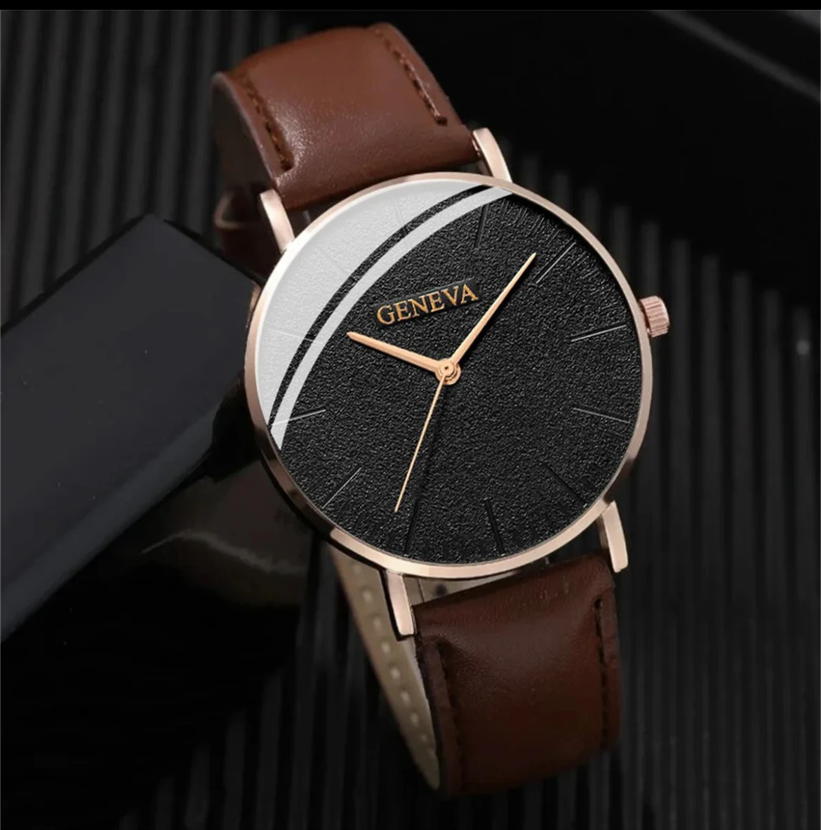 GENEVA Watches for Men Leather Quartz Analog Simple Dial