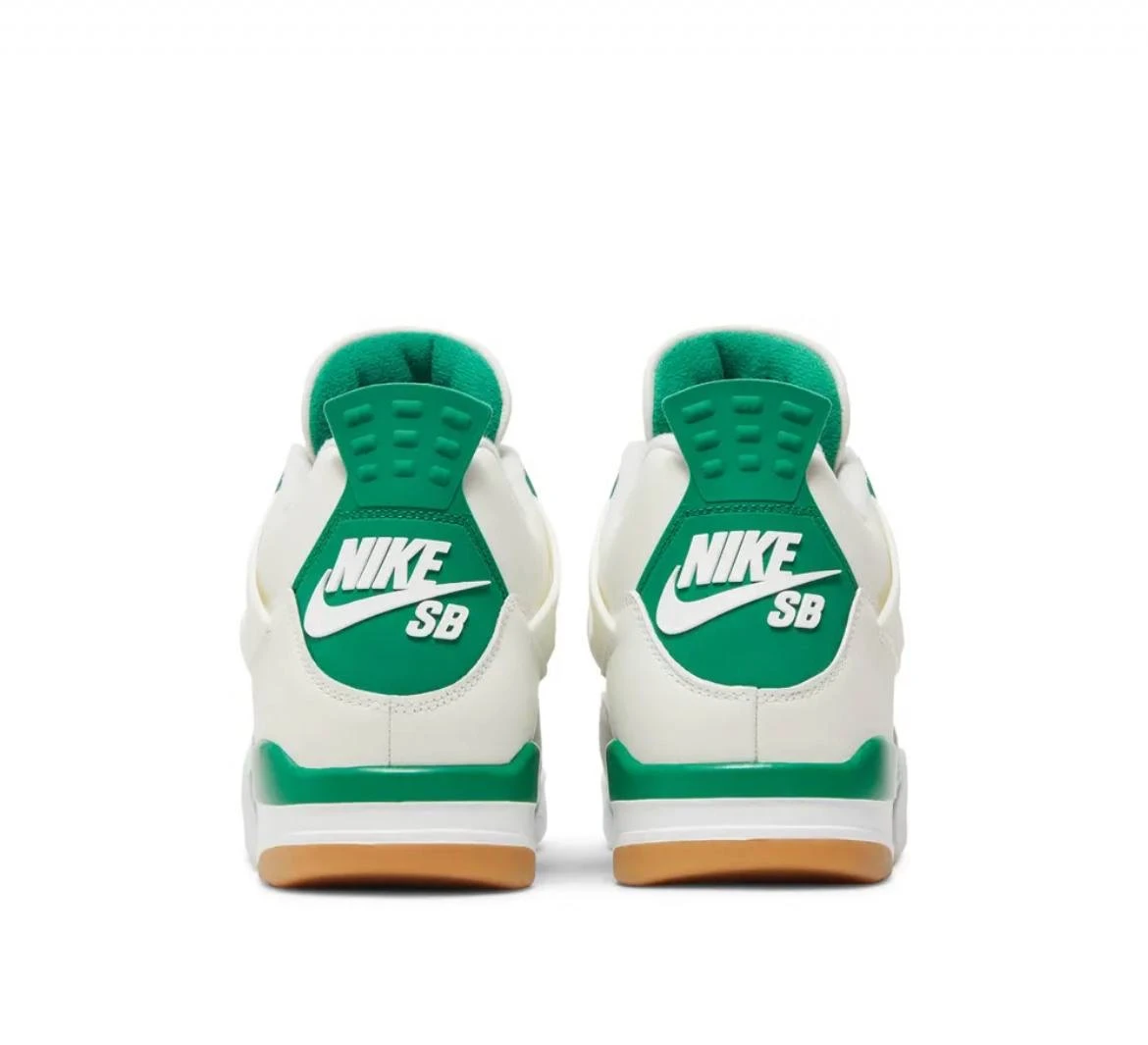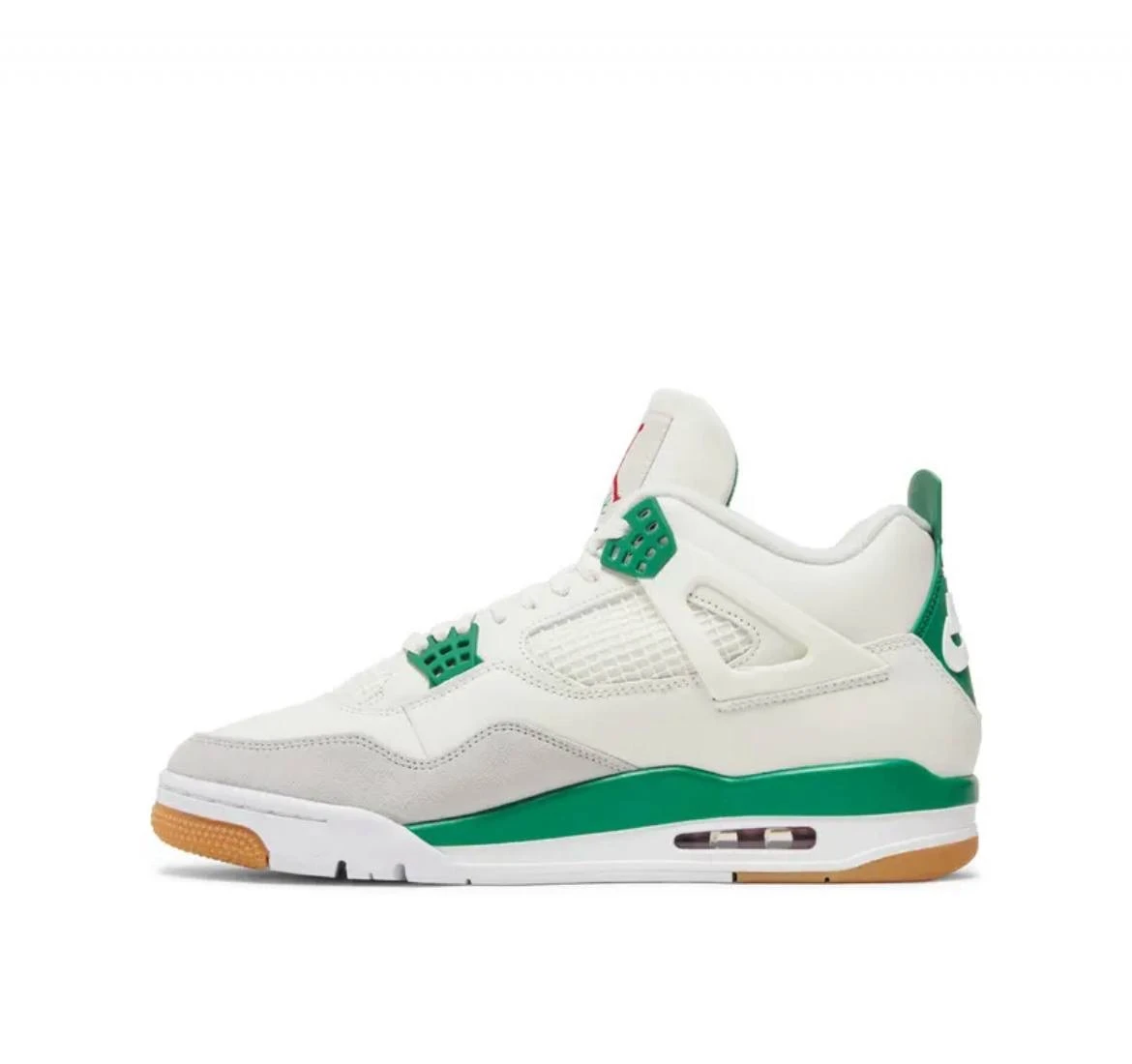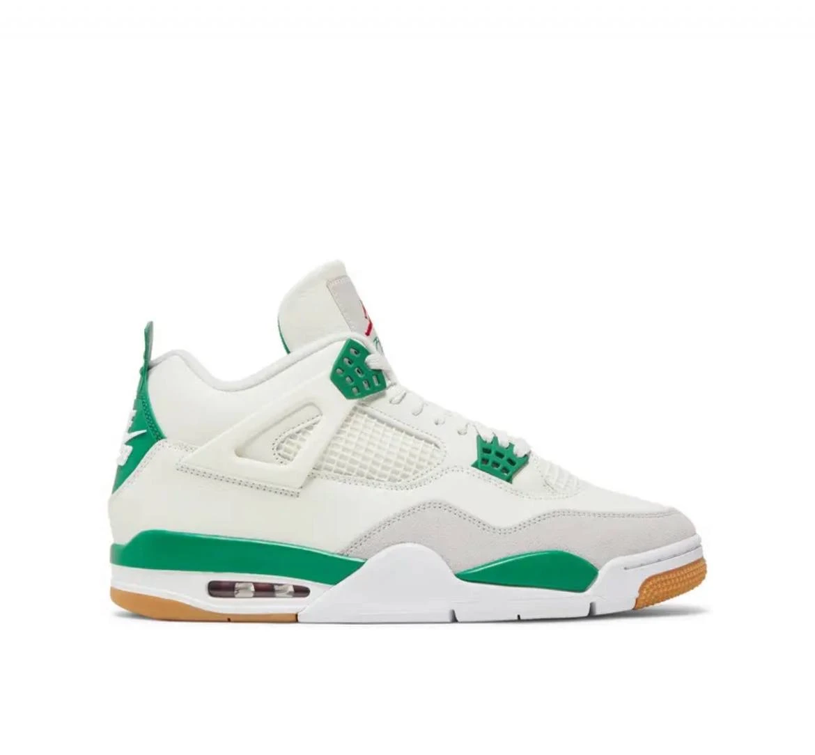 The Nike SB x Air Jordan 4 Retro SP “Pine Green” fuses skateboarding performance with classic Jordan heritage. Built with a smooth white leather and suede upper accented by Pine Green overlays, this sneaker combines durability, comfort, and iconic style. Designed for board control and all-day wear, it features skate-specific modifications including a gum rubber outsole for grip, supportive Air cushioning, and reinforced panels. Co-branded Nike SB and Jumpman details highlight this limited-edition collab. Product Details: